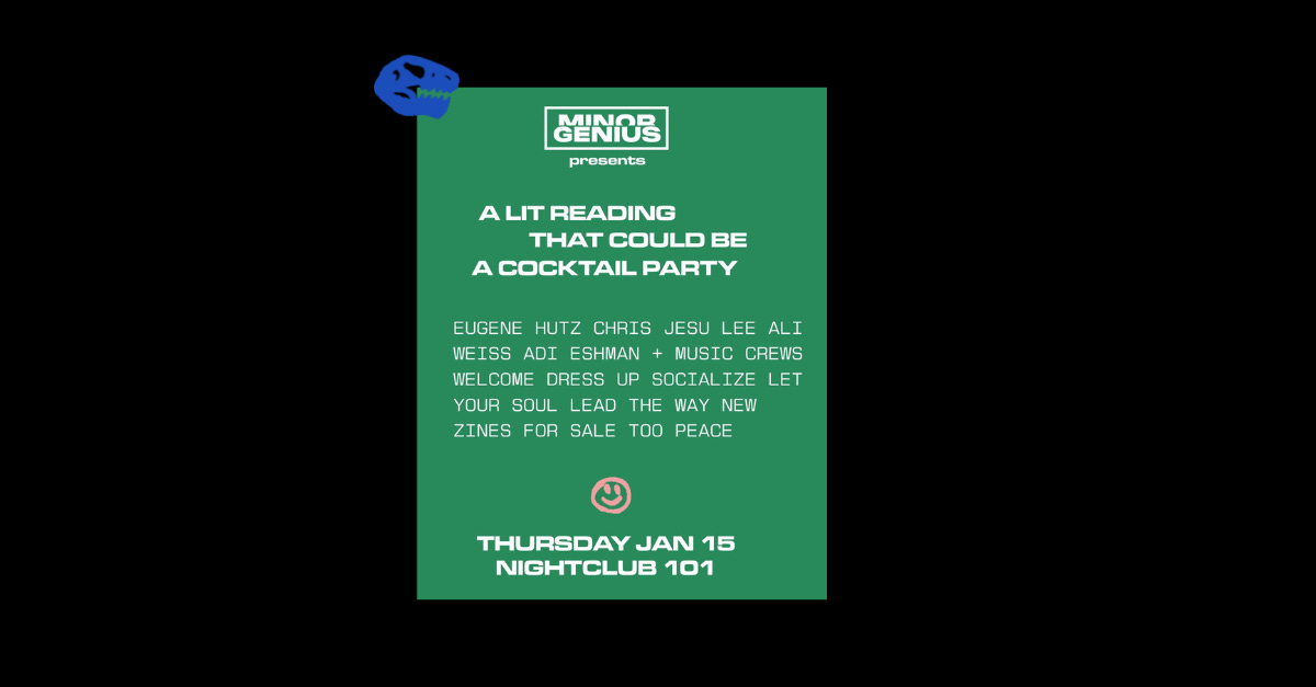 TLDR version : we are hosting another minor genius lit reading this thursday at nightclub 101 with a bunch of great readers. i will also be launching and reading poems from my new zine “think before printing.” this one is limited edition, a soon to be mg grail of just 50 hand stamped copies.